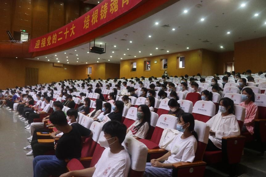 (图为:2022级新生正在认真的听讲心理健康教育讲座现场)