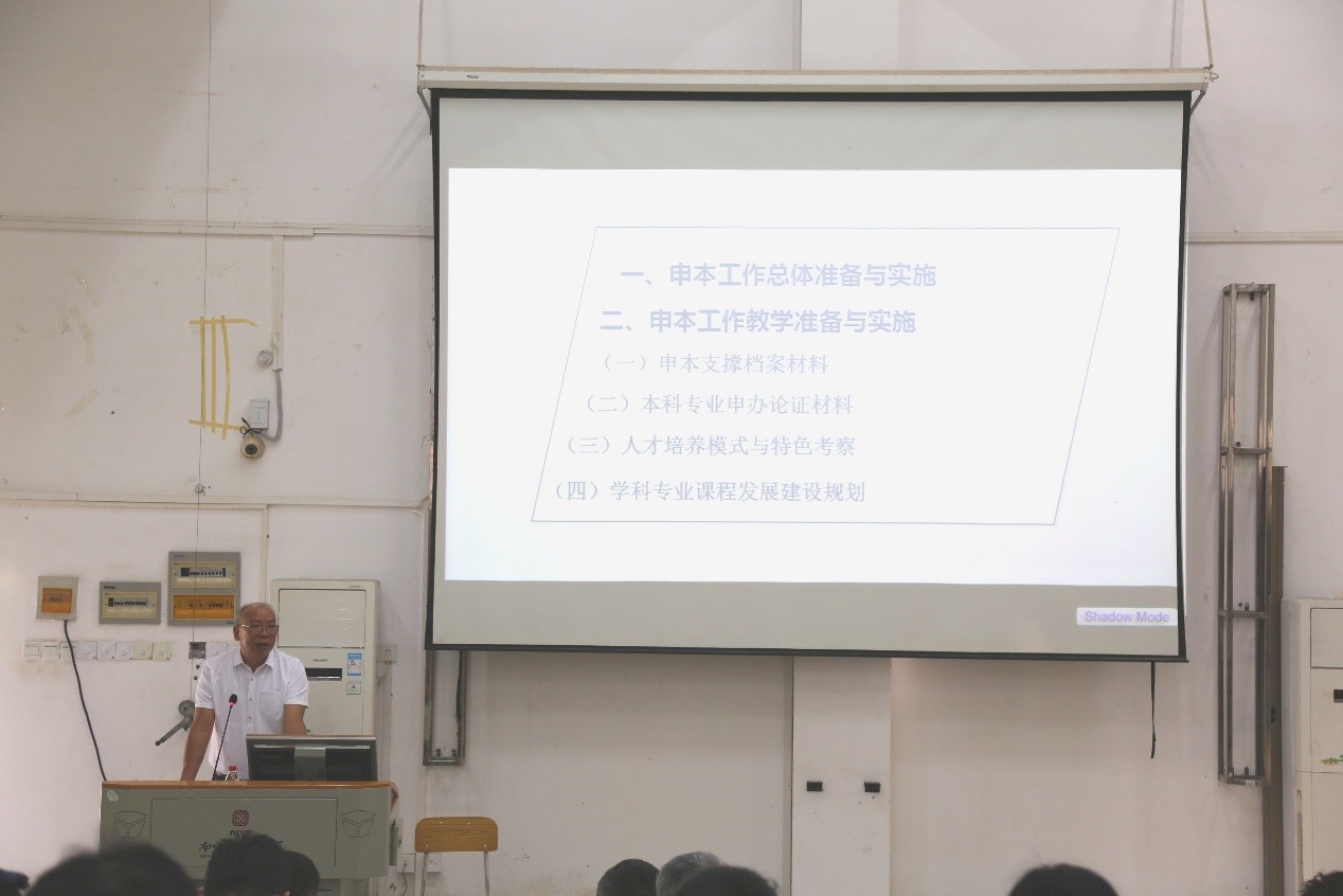 佘伯明以“申本工作教学准备与实施”为主题,从申本支撑档案材料、本科专业申办论证材料、人才培养模式与特色考察、学科专业课程发展建设规划等方面,结合自身的工作经验和感悟,以生动的语言、详实的内容、具体的案例进行了阐述。