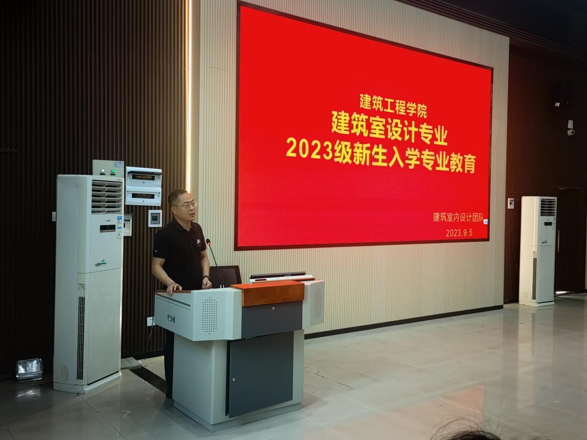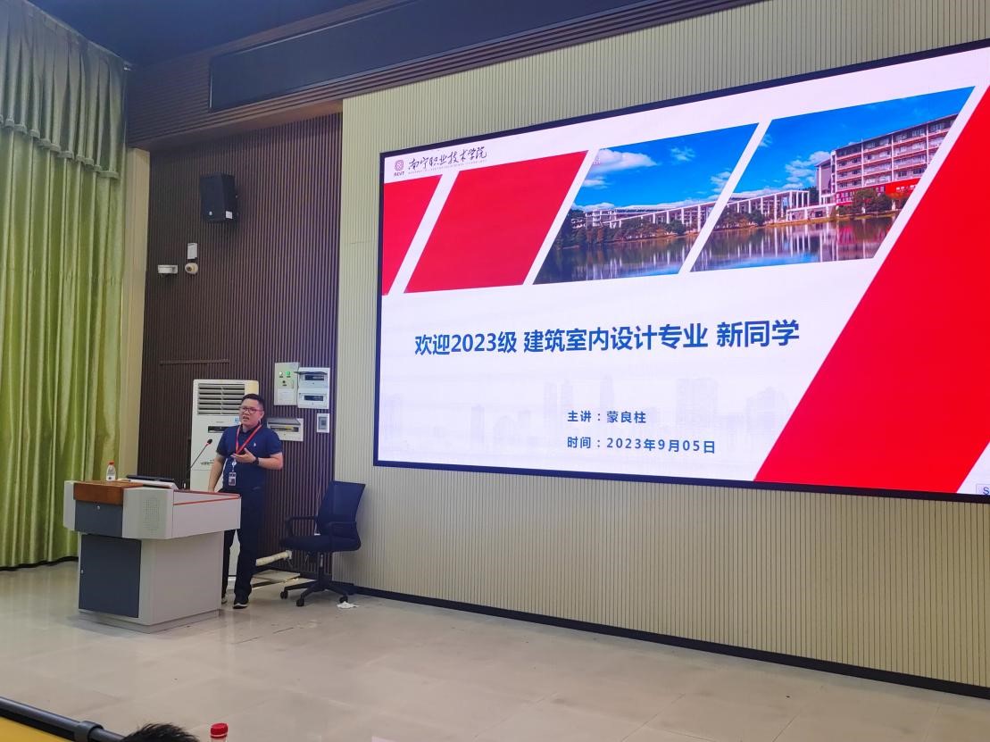 2023年9月5日WilliamHill中文官方网站建筑室内设计专业在三号教学楼四号阶梯教室开展了2023级新生入学专业教育活动,出席活动的有WilliamHill中文官方网站副经理蒙良柱、建筑室内设计专业带头人翁素馨、企业精英也是往届优秀毕业生的李俊材设计师、建筑室内设计专业的老师代表出席了该活动,活动由建筑室内设计专业带头人翁素馨主持。