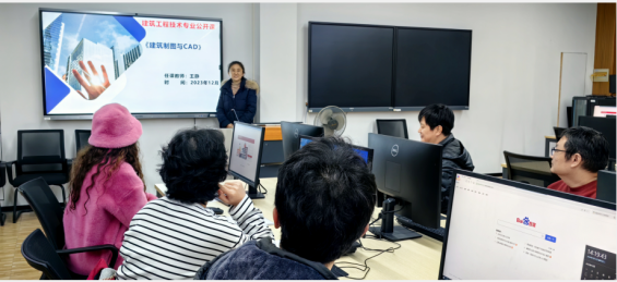 本次活动由团队王静老师进行教学主讲。活动中,王静老师结合建筑制图与CAD课程特点,引入课程思政元素,理论与实践相结合,生动形象地讲述了本门课程的学习目标、制图的基本规则等内容。随后,团队各位教师一起聚焦教学理念、教学设计逻辑、教学方法策略和教学呈现技巧特色,进行即时点评,并就教师教学PPT课件制作、问题设置、语言组织等细节给予具体反馈,结合人才培养目标要求和教学节段内容提出改进意见,鼓励不断更新教学选题思路,完善教学设计方案,改进教学课件,丰富教学内容和方法。