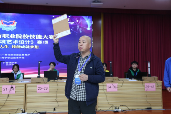 2024年3月16日,由广西壮族自治区教育厅主办的2024年广西职业院校技能大赛(高职组)环境艺术设计赛项在南宁职业技术学院三号厅隆重举行。本次比赛共有全区43只参赛队伍参加,竞赛从早上7:30开始,经过两轮抽签加密入场,分为两个模块,共历时6个小时。