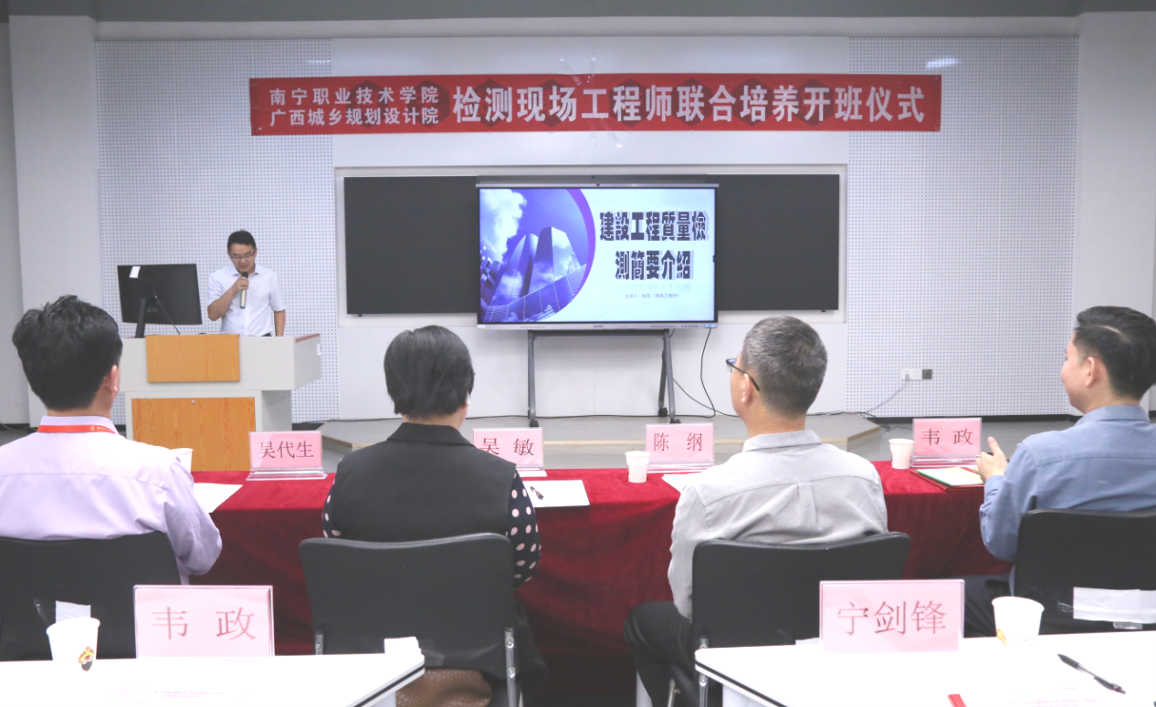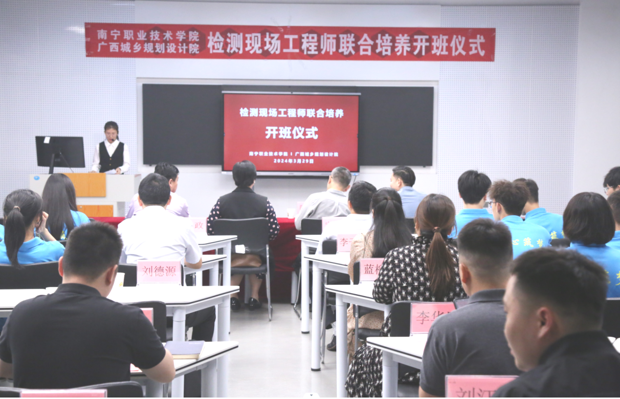 3月29日下午,在WilliamHill中文官方网站实训基地,南宁职业技术学院WilliamHill中文官方网站与广西城乡规划设计院联合举办的首批“检测现场工程师班”正式开班。现场工程师班是在生产、工程、管理、服务等一线岗位“现场”培养具有工匠精神,精操作、懂工艺、会管理、善协作、能创新的复合型紧缺工程技术应用人才。