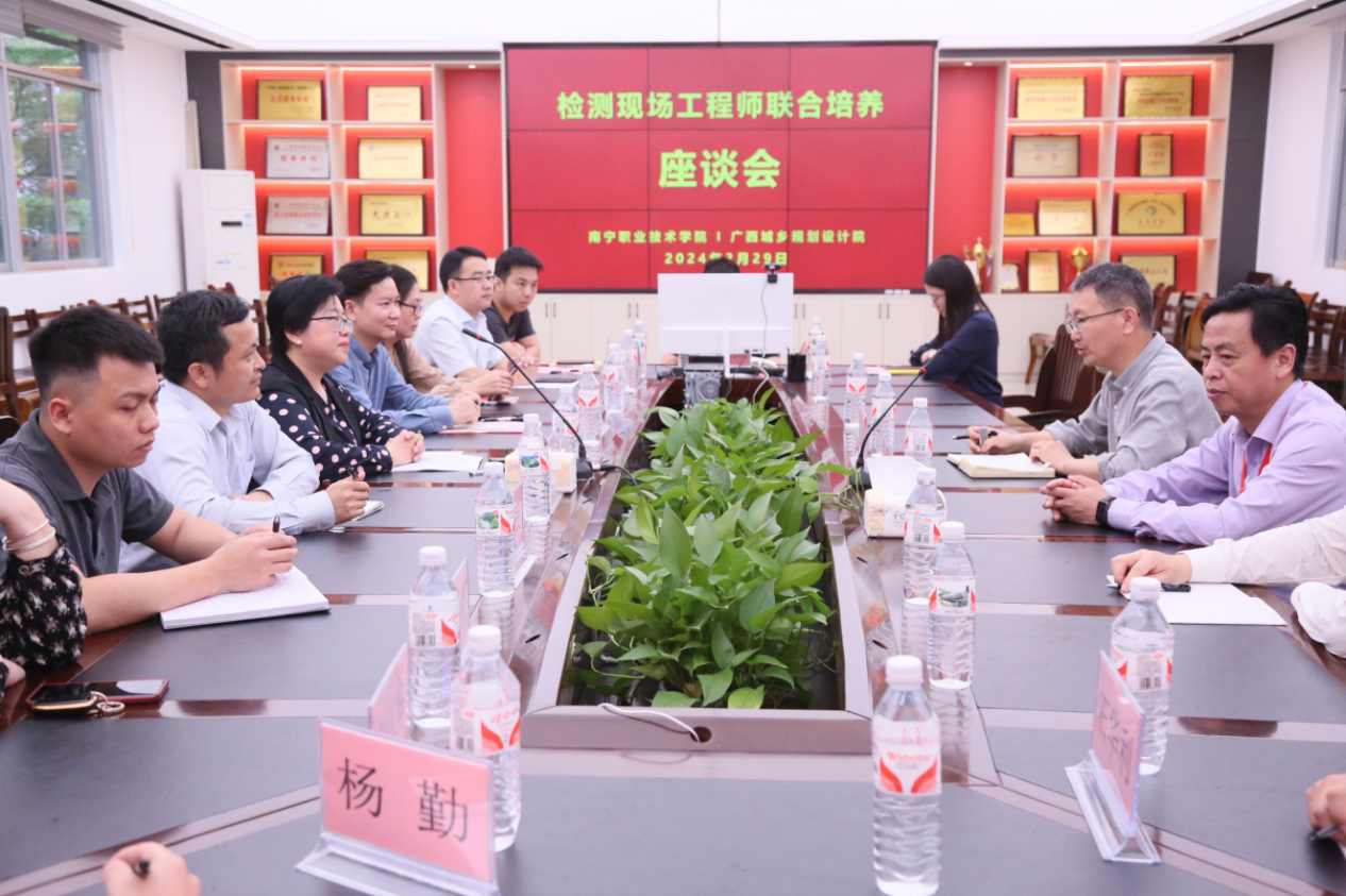 开班仪式后,校企双方领导、企业骨干、学院教师共同就检测现场工程师联合培养项目开展座谈。座谈会上,陈纲代表学院对吴敏一行的莅临表示欢迎,他表示,学院高度重视“现场工程师”专项培养计划项目,下一步,双方要结合学校“双高”建设任务,在人才培养、“双师型”教师队伍建设、社会服务、国际化交流等方面积极主动与广西城乡规划设计院探索产教融合新路径。