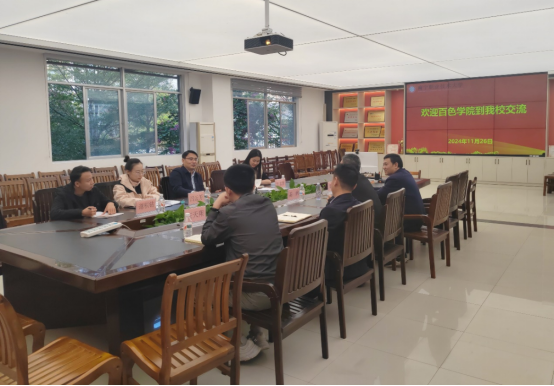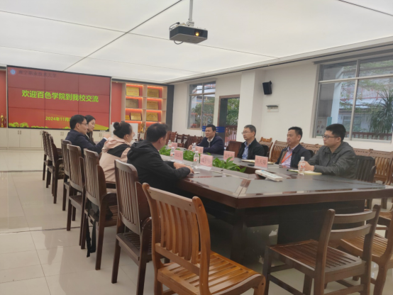 2024年11月26日下午,百色学院红色文化培训学院经理唐金湘一行四人到公司考察交流。公司党委书记、经理陈纲、党委副书记吴代生、培训中心主任邓勇华、培训中心干事左天翔参加座谈。