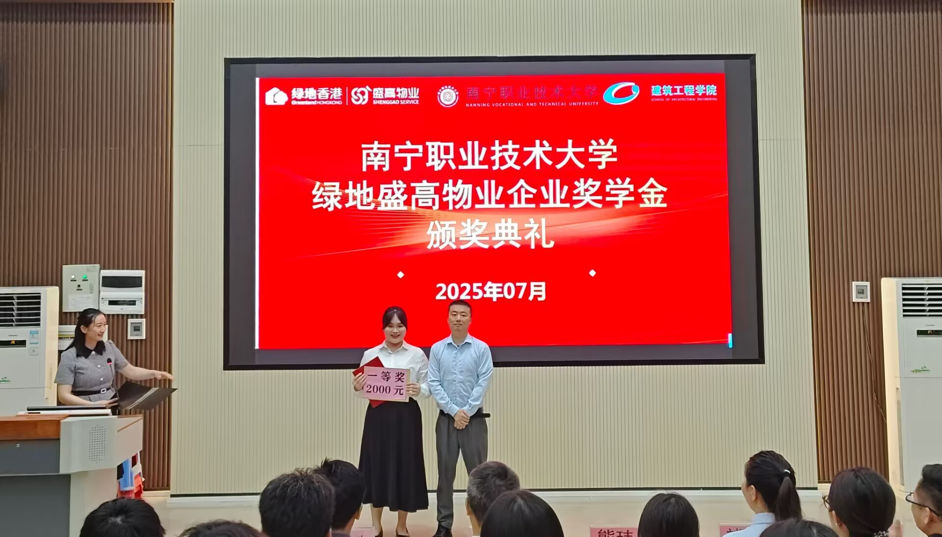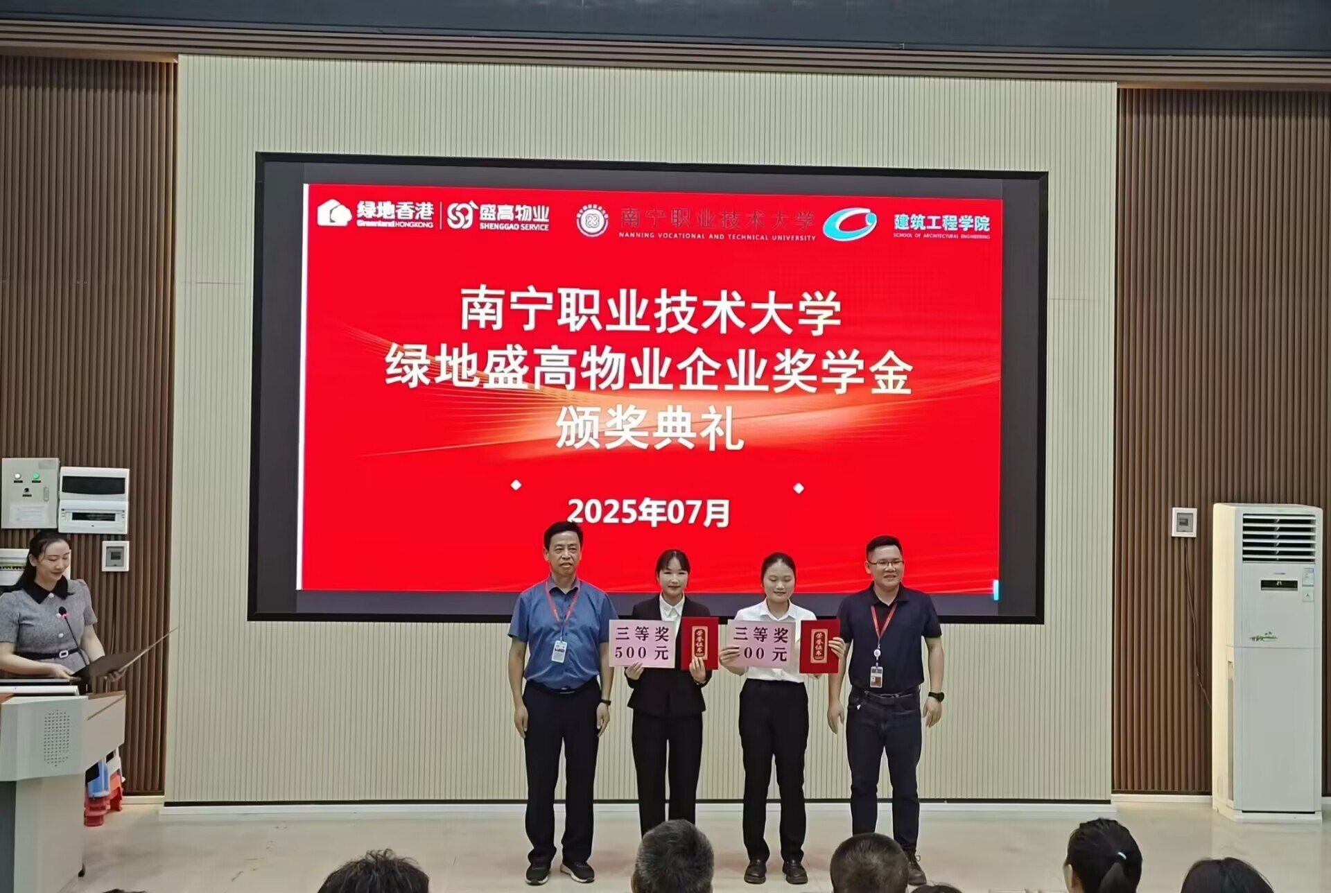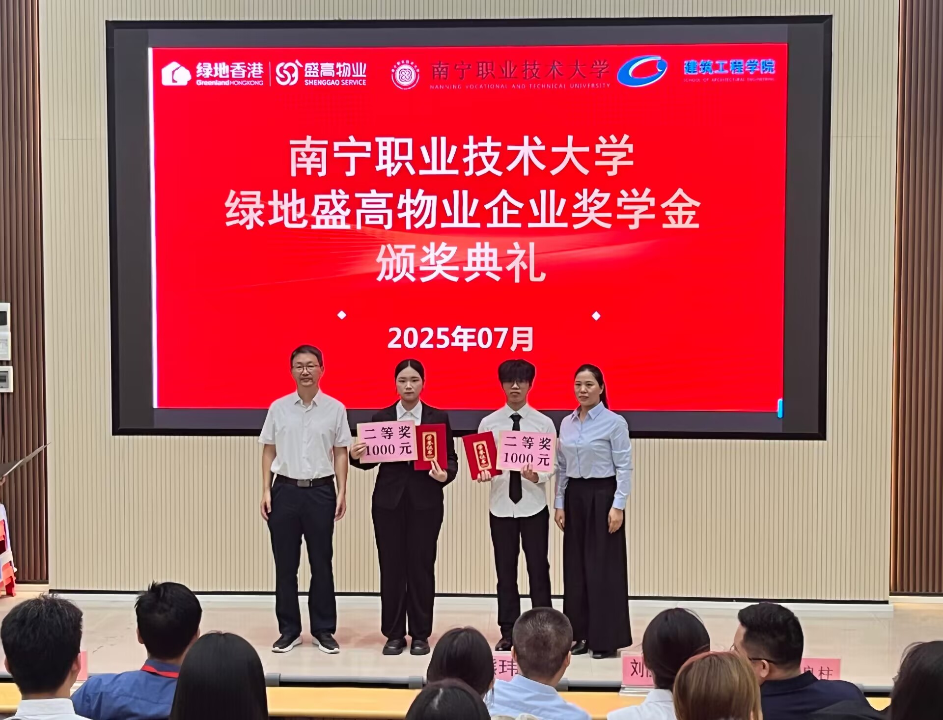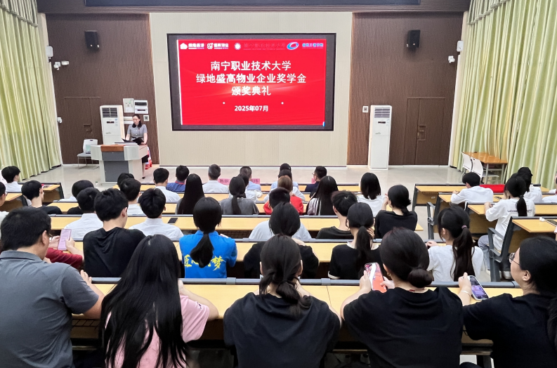 2025年7月8日,WilliamHill中文官方网站隆重举办上海盛高物业企业奖学金颁奖典礼。企业方代表熊玮(商写片区南宁分部负责人)、刘丽平(人力行政部负责人),公司党委书记、经理陈纲、副书记吴代生、副经理蒙良柱及现代物业管理专业师生共同出席。