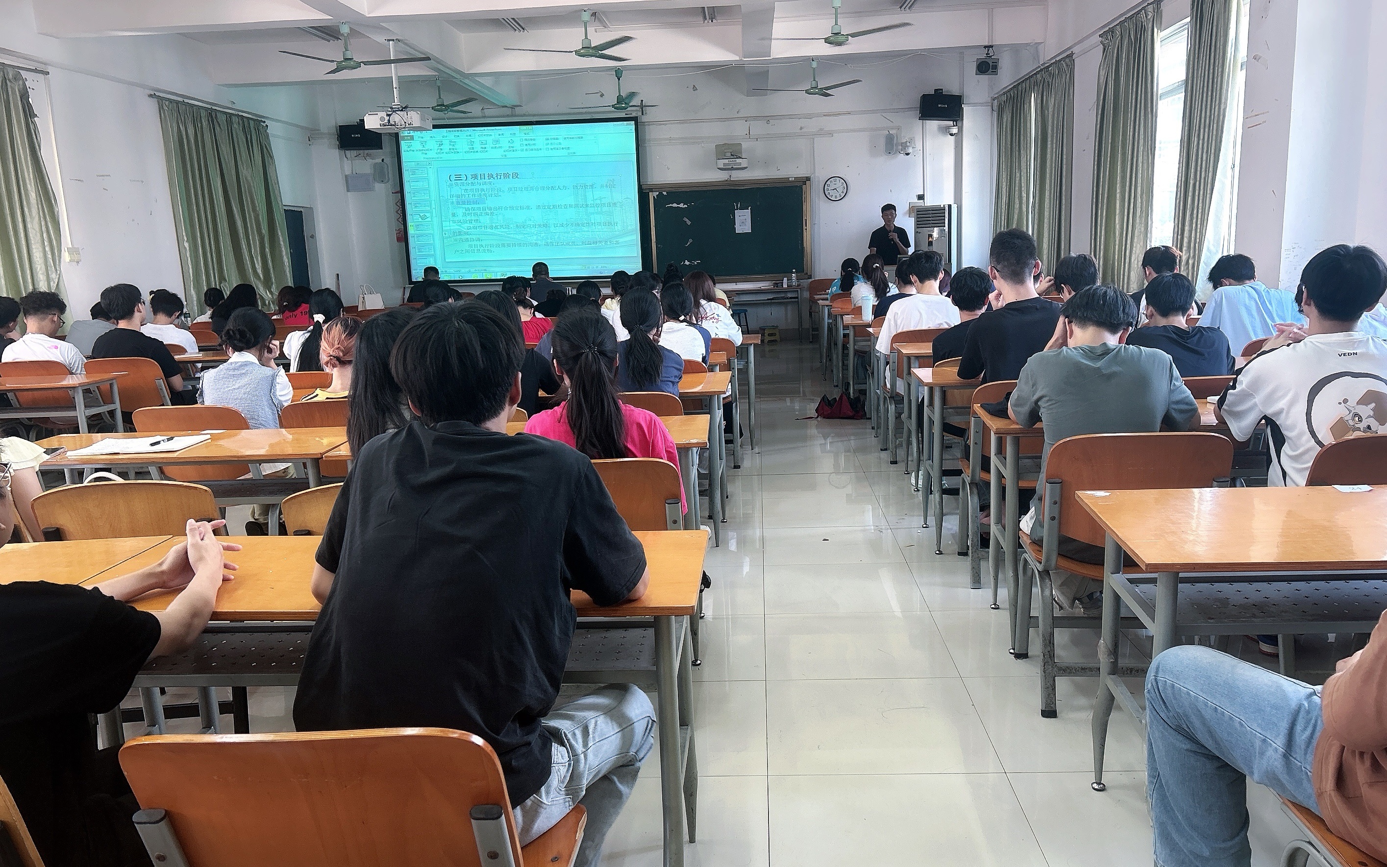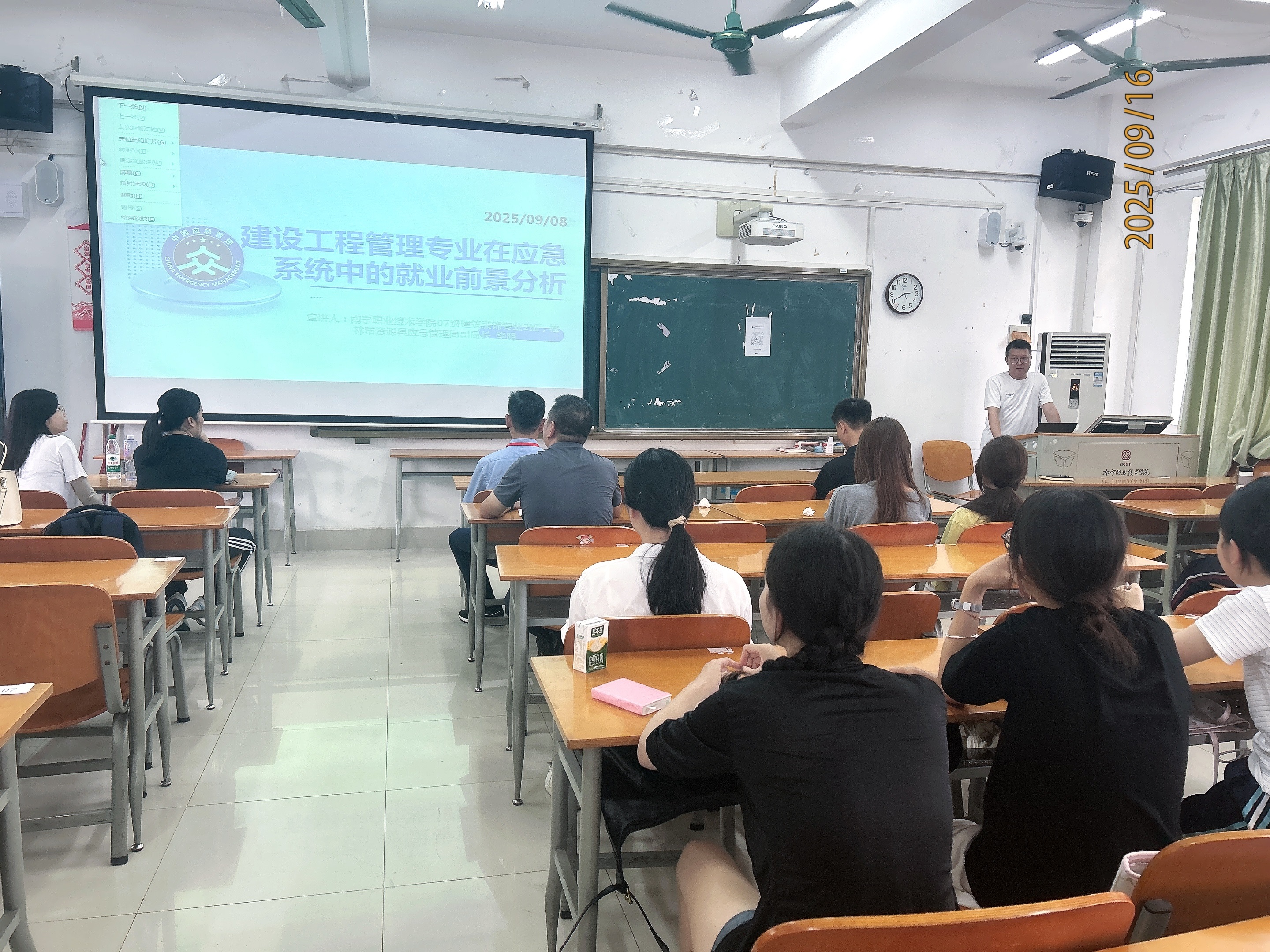 企业专家桂林市资源县应急管理局副局长李明以”建设工程管理专业在应急系统中的就业前景分析”为主题,从专业定位与应急需求、应急系统岗位全景、薪酬成长与职业通道、能力地图与证书组合等方面讲解。企业专家广西建工第一建筑工程集团有限公司杨臣宇以“浅谈工程项目管理”为主题,阐述了从传统的项目管理到智慧工地转变,以及未来项目管理发展的趋势。