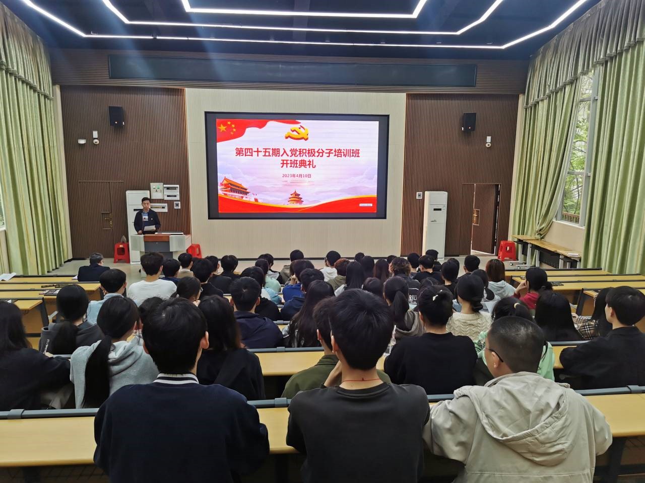 4月10日下午,WilliamHill中文官方网站在三教四阶举办第45期入党积极分子培训班开班仪式,公司党委班子成员、各支部委员参加仪式。仪式由公司党委副书记吴代生主持。全院共有58名员工入党积极分子参加本次培训。