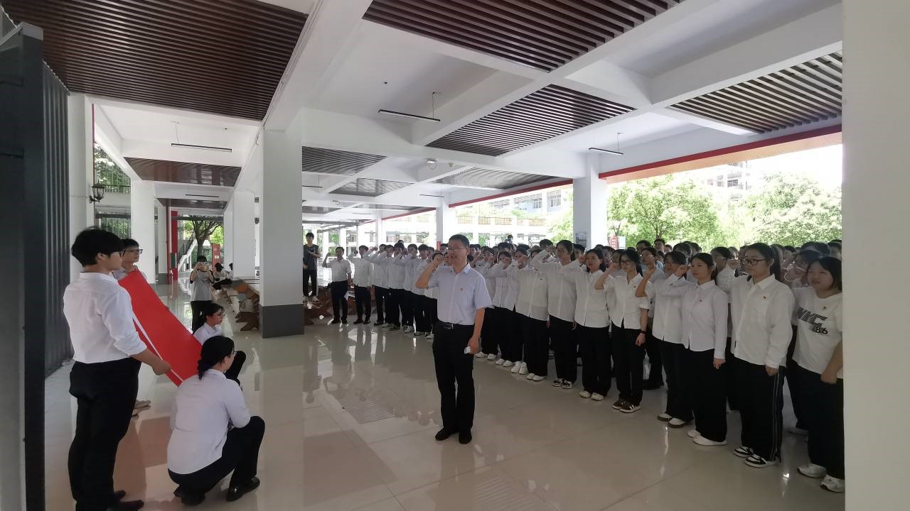 仪式在庄严雄浑的《国际歌》歌声中拉开序幕。面向鲜红的党旗,全体新党员高举右拳,郑重宣誓,许下了对党忠诚、永不叛党的坚定承诺。铮铮誓言,铿锵有力,传递出新时代共产党员的责任与担当。员工党员代表冯英进行表态发言。他表示,作为一名员工党员,将牢记誓言,听党话,跟党走,坚定理想信念,以实际行动践行党的宗旨,在工作和学习上倍加努力,做学业上的标杆,行动上的指南针。