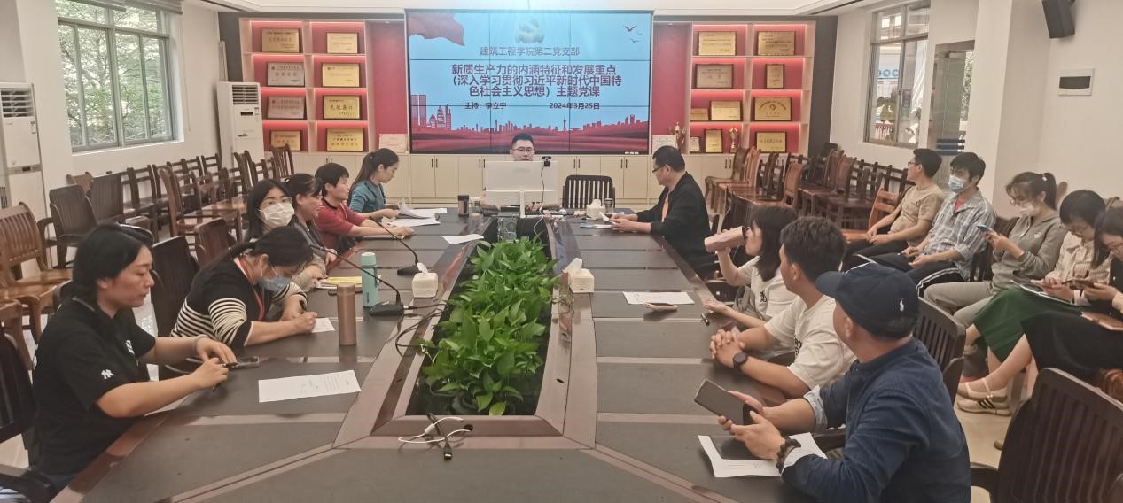 3月26日下午,在WilliamHill中文官方网站C203会议室,党支部书记李立宁为党支部作关于“新质生产力的内涵特征和发展重点(深入学习贯彻习近平新时代中国特色社会主义思想)”主题党课报告。