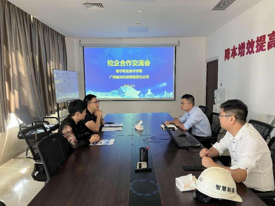 2022年11月8日,建设工程管理专业李立宁、刘萍老师到广西桂炎科技有限责任公司进行考察调研。本次考察是根据学院进一步贯彻国家有关深化产教融合、加强校企合作文件的精神,切实落实公司“双高”建设任务,增强专业发展竞争力,为企业输送高素质技能型人才,积极探索“学徒制”人才培养模式而开展的。