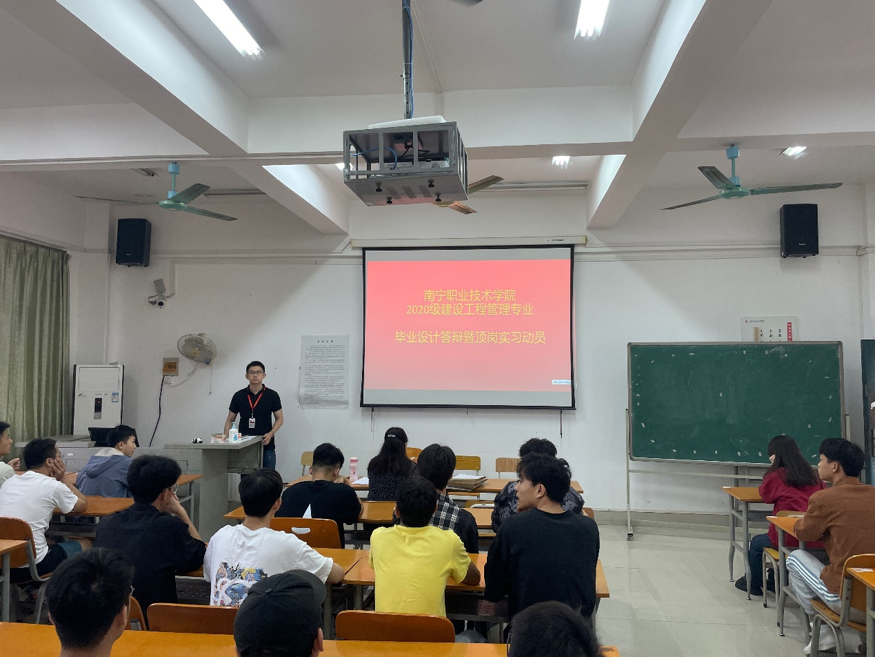 在顶岗实习动员中,李立宁等顶岗实习教师为员工做了2022年行业、企业发展形式分析,鼓励同学们主动争取专业实习机会,要求同学们严格按南宁职业技术学院顶岗实习管理的有关要求做好事情申请和过程管理,提示同学们做好顶岗实习安全防范和疫情防控工作,以饱满的热情、积极的态度顺利完成顶岗实习工作。