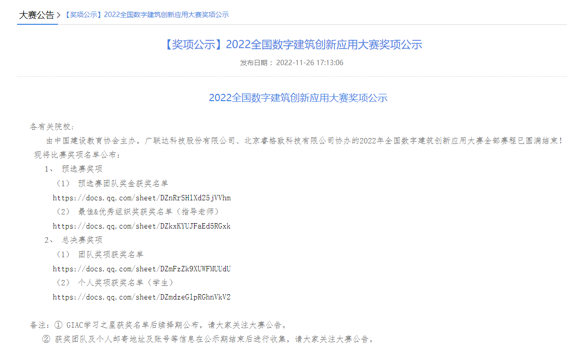 2022全国数字建筑创新应用大赛“赛项三”获奖名单
