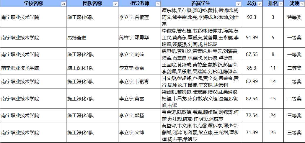 2022年11月26日,2022年全国数字建筑创新应用大赛成绩名单正式公示,公司建设工程管理、工程造价、建筑工程技术等专业获得3个特一等奖次,5个二等奖次,5个三等奖次。其中,由建设工程管理专业员工组成的“施工深化6队”成绩名列全国第3,喜获特等奖次。