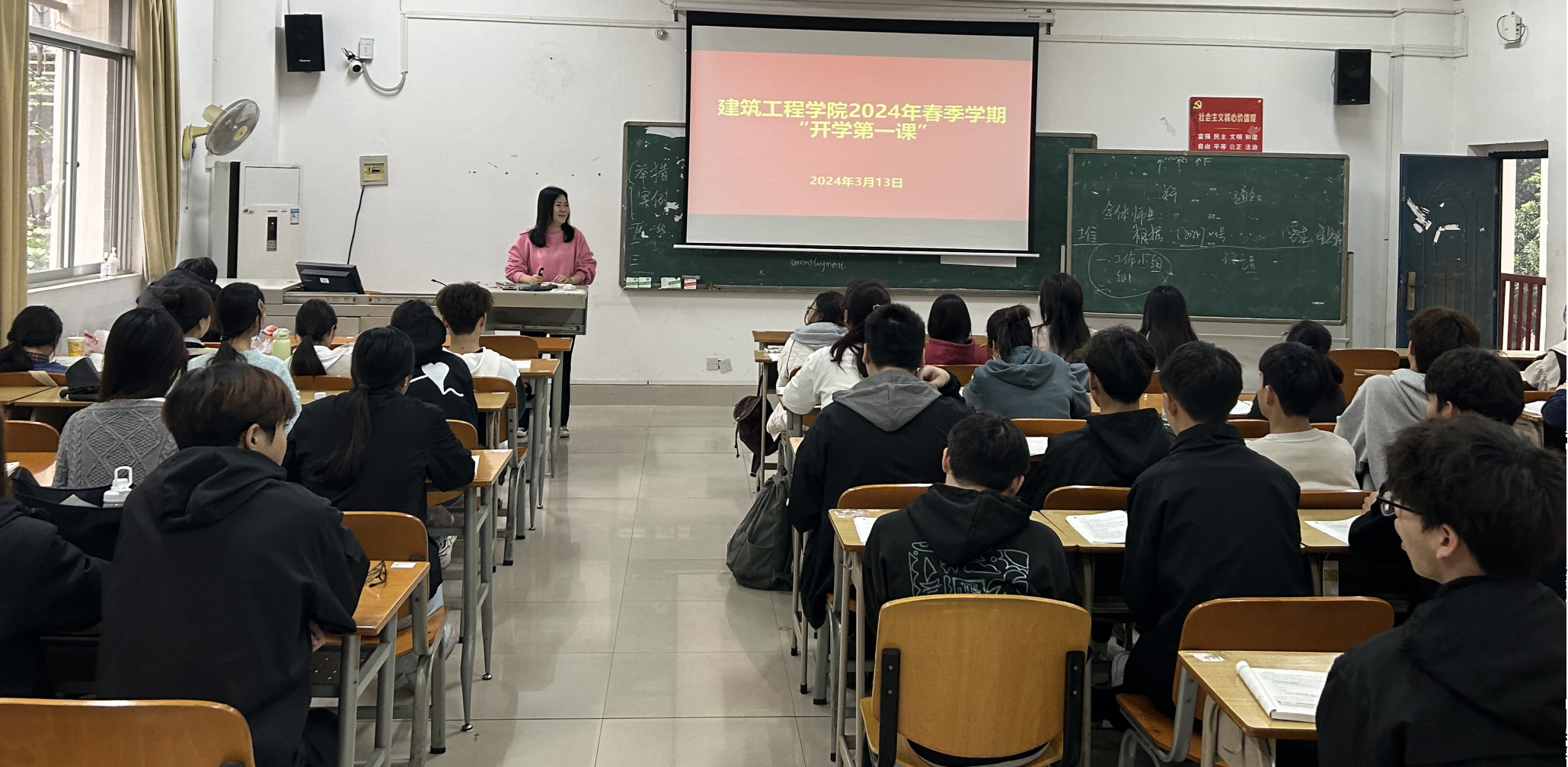 班主任们围绕政治教育、道德教育、法治教育、安全教育、心理健康教育、 红色传承教育、民族团结教育、专业认知、校园文化教育、职业生涯规划等主题为员工上“ 开学第一课”。23室内1班班主任庄祺老师以《大学之道》为主题开展主题班会,与同学们探讨该如何度过自己的老员工活,引导同学们努力学习、培养多方面的兴趣爱好,为自己人生打下良好的基础;23物业3班班主任宁婵老师与同学们《论快乐》,着重心理健康教育,打开同学们心扉,解开同学们的迷茫与困惑;23房产2班班主任吴洋滨老师以《勿忘昨天、无愧今天、不负明天》为题,勉励同学们把个人的理想追求融入党和国家事业之中;23工管2班班主任林真旭老师寄语每位员工“不忘初心,笃行好学”,谆谆善诱,引导同学们培养健身习惯、提高安全意识、养成良好学习习惯。