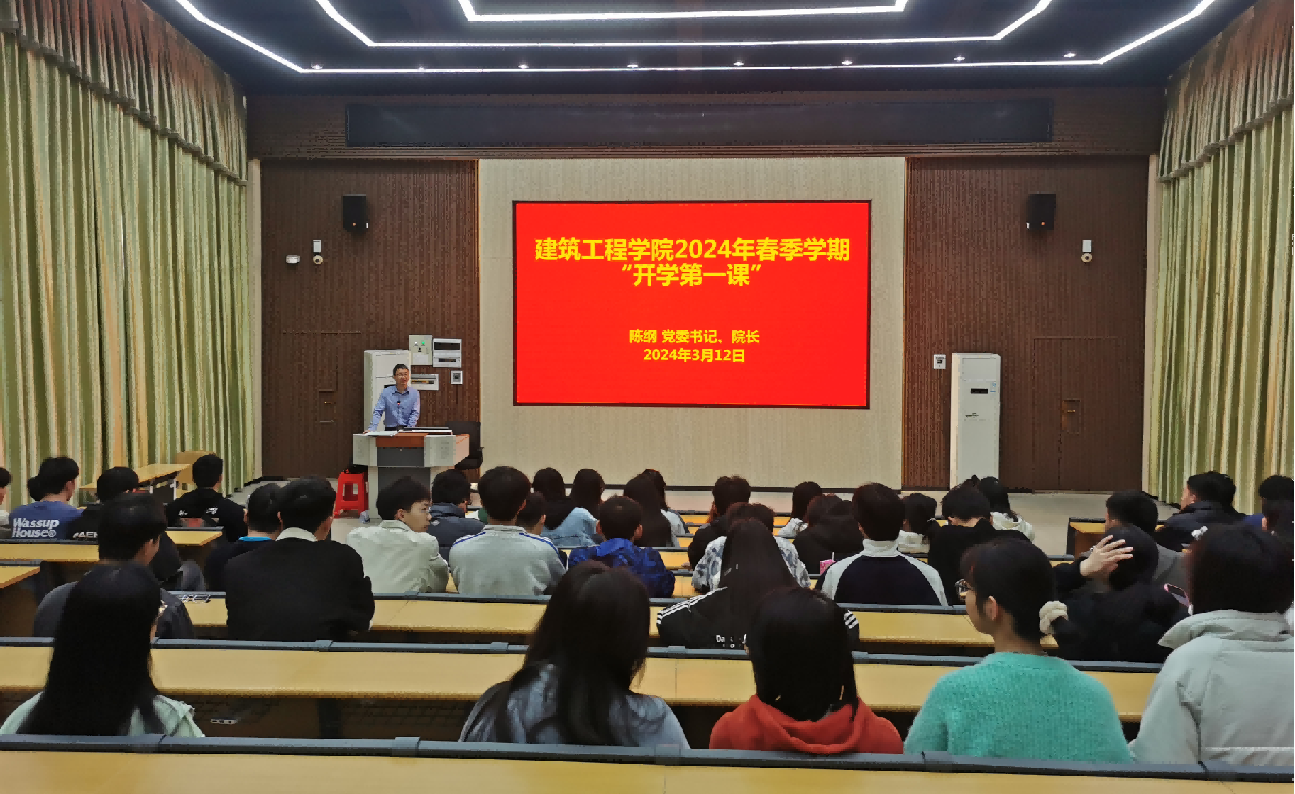 陈纲以《知世界知中国知社会知自己》为题,从政治、社会、经济、文化、生态等五个方面,细说当今世界变化与发展,勉励同学们做到“知世界、知中国、知社会、知自己”,进一步做到知行合一。授课中,陈纲紧贴社会热点——核废水、俄乌战争、黄金、美元超发、AI等,结合自身工作生活经历,以幽默风趣的语言,为同学们讲授了一堂生动的时势与政策。陈纲不忘勉励同学们努力学习知识技能,为追求美好生活而奋斗。