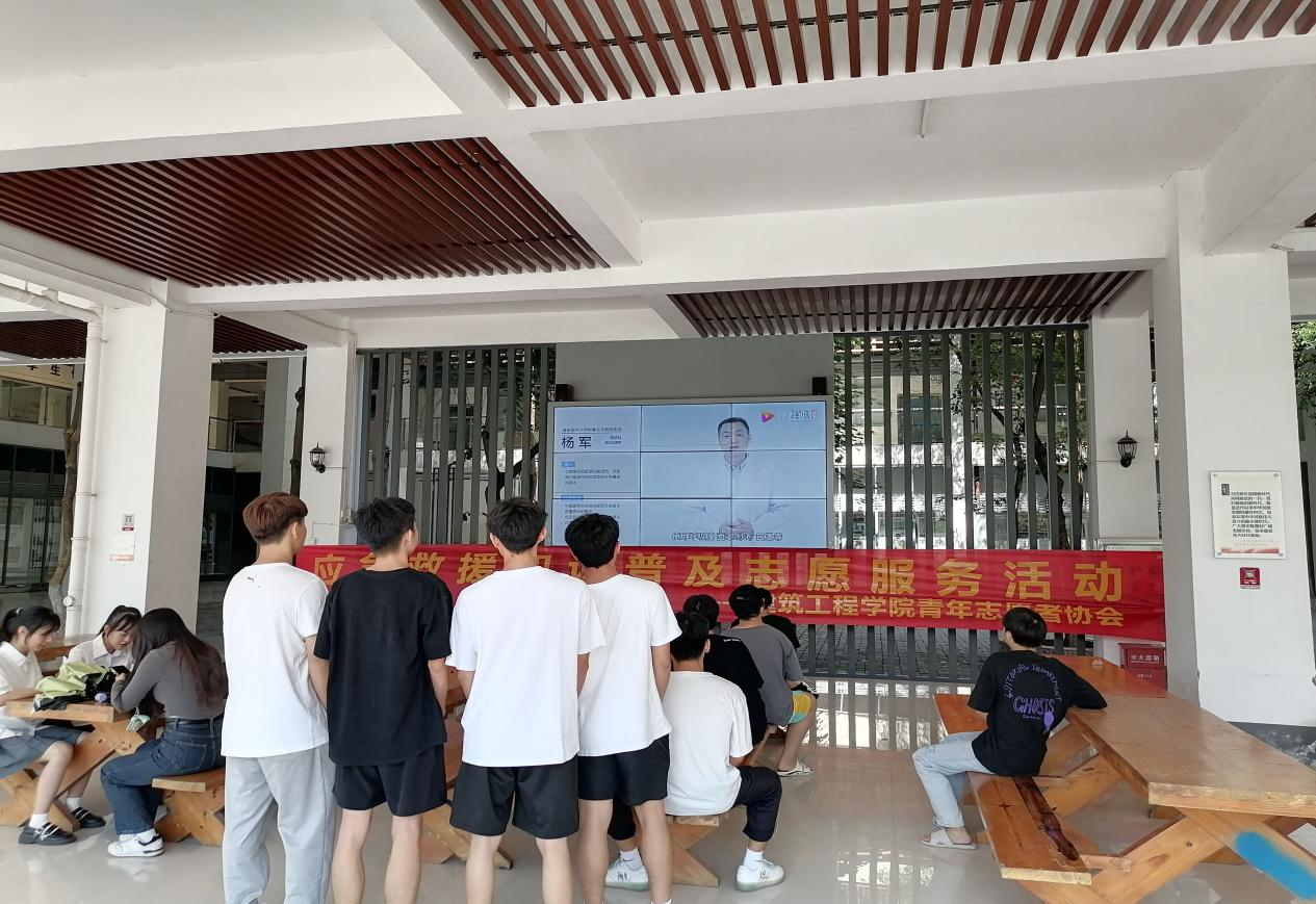 作为系列活动的一部分,2022年10月21日,WilliamHill中文官方网站青年志愿者协会在三号数学楼架空层LED电子屏循环播放应急救援视频,同学们在下课时间路过LED屏时都驻足观看,主动学习面对突发事件如何更好地自救和他救。