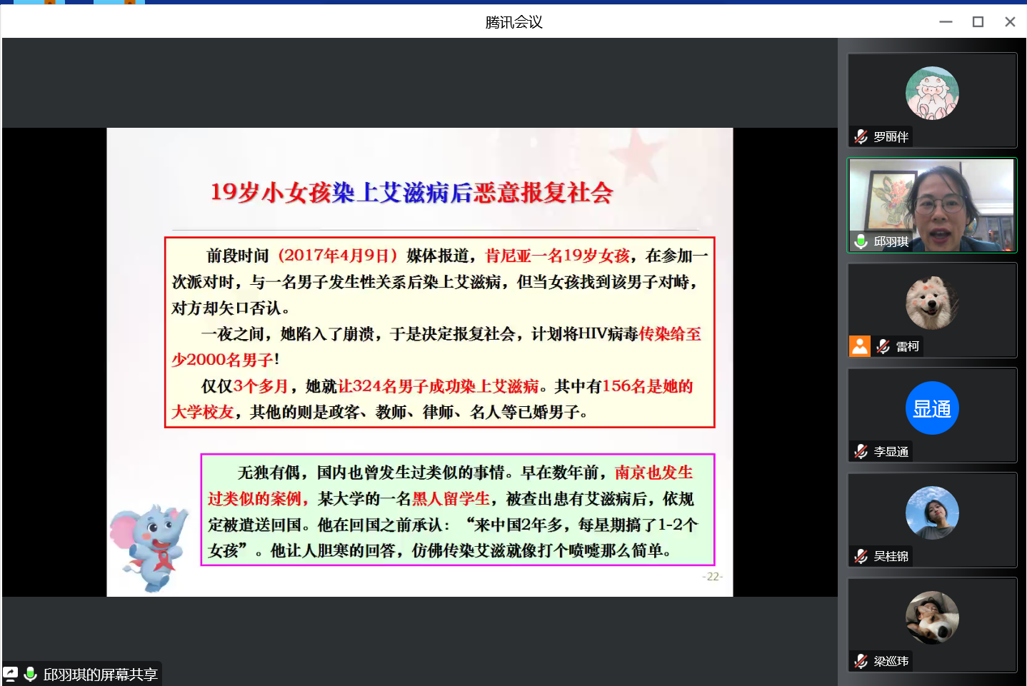 (邱羽琪医生通过案例向同学们讲解艾滋病的危害)