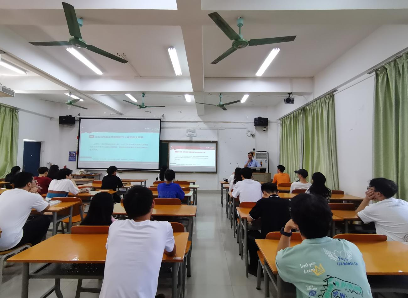 中国共产党第二十次全国代表大会10月16日隆重开幕,习近平总书记代表第十九届中央委员会向大会作报告。为团结引领广大团员和青年坚定不移听党话、跟党走,激发公司员工爱党爱国、团结奋斗的壮志豪情,WilliamHill中文官方网站党委副书记吴代生于10月27日在三教C410进行秋季学期团校第一课的授课,领学党的二十大精神,各班团干部参与学习。