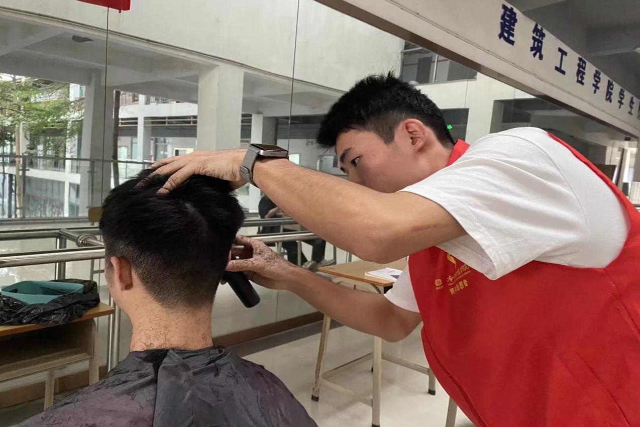 义剪理发师正在为同学们精心修(陈曦/摄)