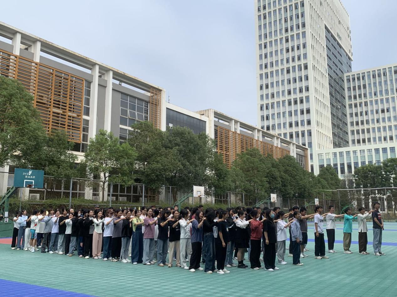 (图为:同学们正在进行热身运动)