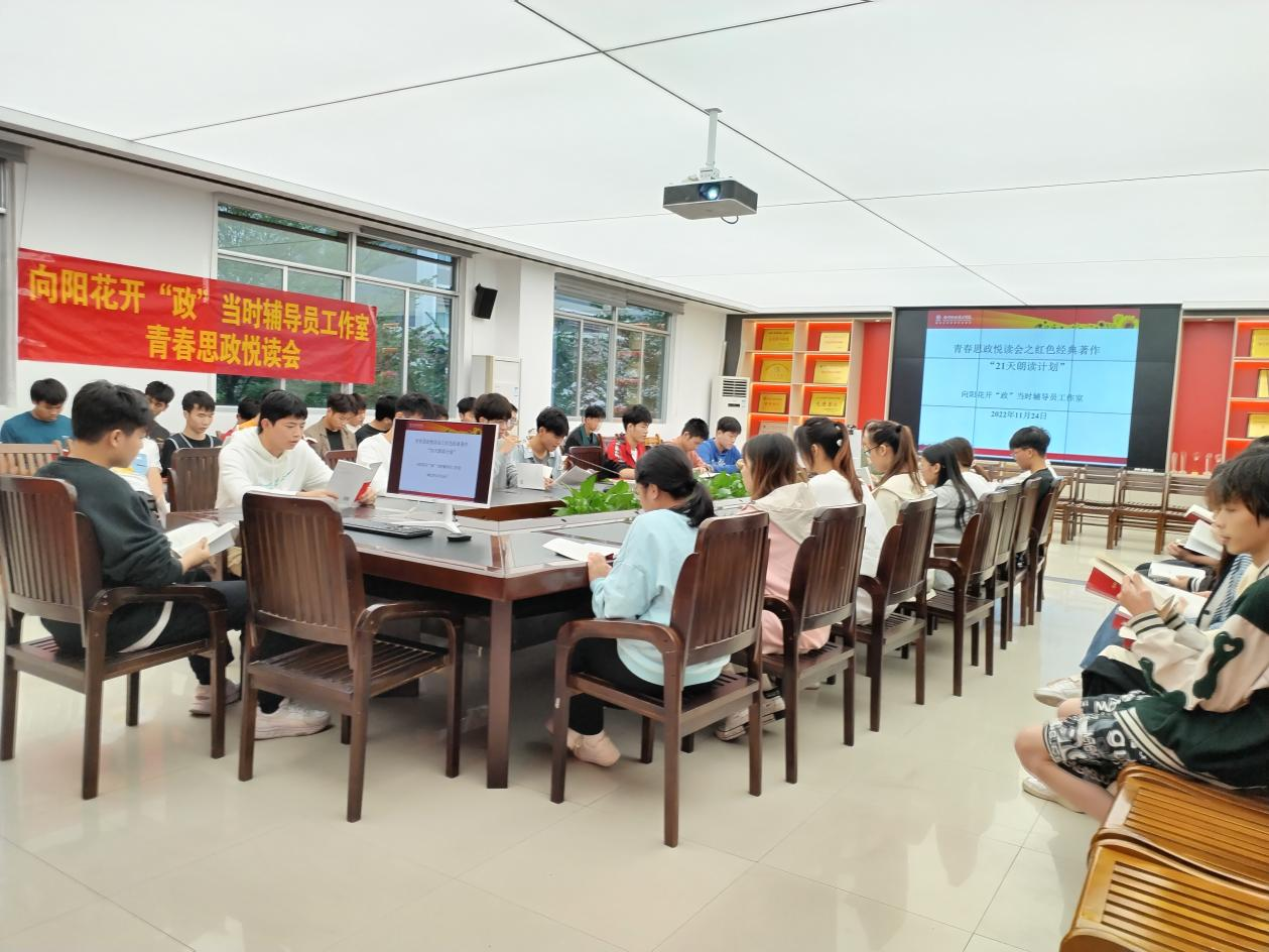 “青春思政悦读会”是向阳花开“政”当时辅导员工作室的特色品牌项目之一,通过定期开展思政教育经典著作读书会,发布“21天朗读计划”和读书征集令,组织同学们开展红色经典著作读书后,并积极鼓励大家形成读书笔记,总结学习感悟,让思想政治教育见实效。