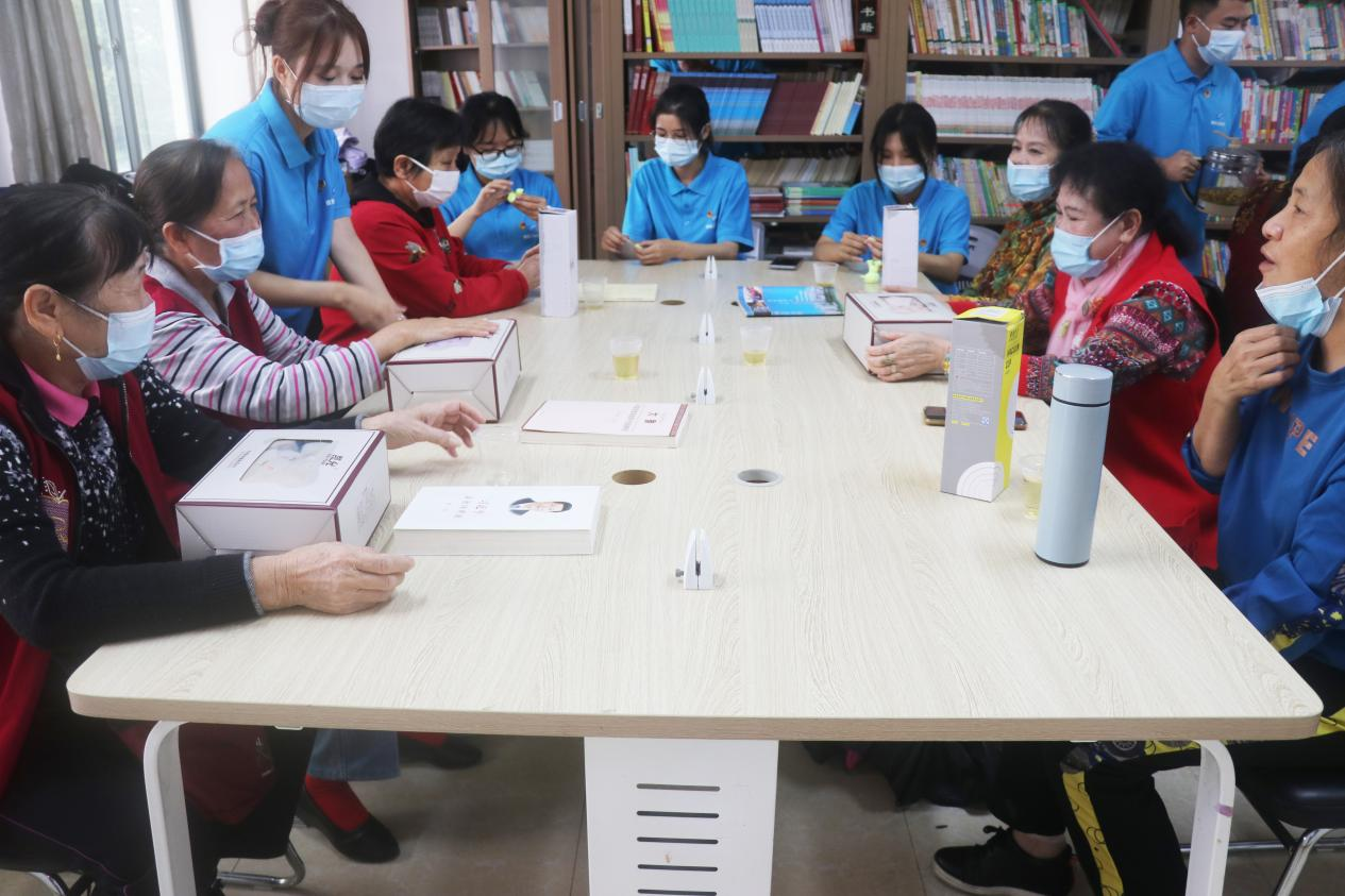 老党员和同学们一起分享了《习近平谈治国理政》第四卷,畅谈老一辈中国共产党员对当代中国青年的期望。同学们和老党员的沟通从拘束到畅聊,从国家时事聊到学校专业再到家长里短,大家双向分享着自己的日常生活。社区工作人员还组织大家一起进行猜字和普法面塑欣赏的互动方式将愉快的氛围推向高潮,欢声笑语瞬间填满了活动室。天气渐凉,同学们向老党员们送上了暖手袋、保温杯等慰问品。活动最后,老党员代表李桂南对同学们提出希望,同学们要在老员工活中立大志、明大得、成大才、担大任,自觉担当尽责,始终成为组织中国青年永久奋斗的先锋力量。