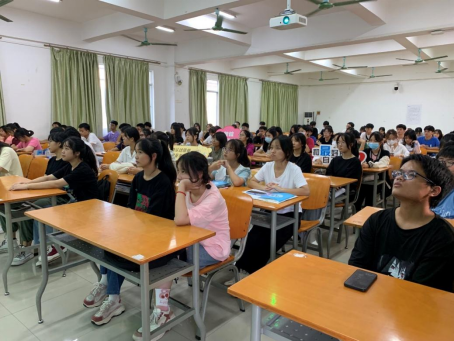 图为:同学们在认真听讲座