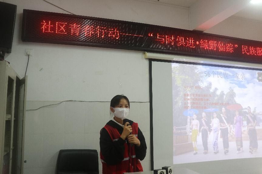 (图为:徐丽珠同学向小朋们友普及民族知识)