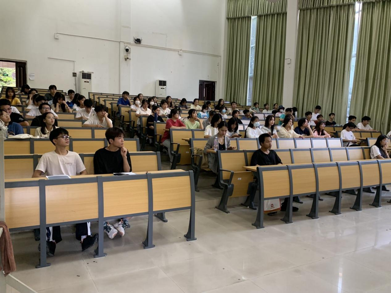 (图为:同学们在认真倾听学长学姐的分享)