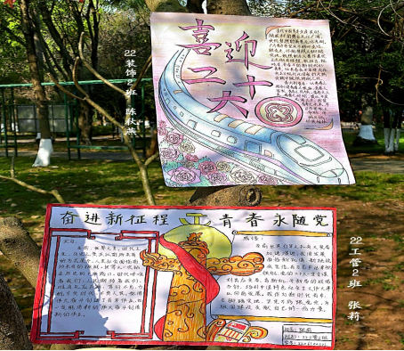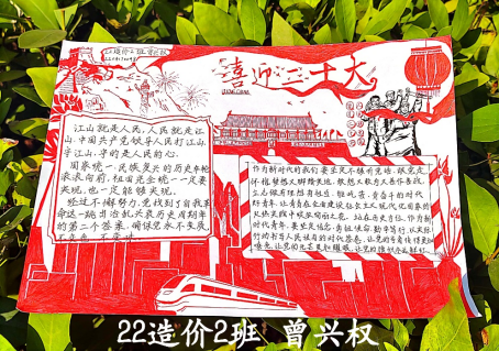 公司以学习党的二十大报告内容和贯彻党的二十大精神为契机,结合学风建设主题,开展了党的二十大报告金句摘抄海报设计活动,要求员工们研读党的二十大报告,选取有感悟的段落进行摘抄,并附上自己的感悟,配画设计成海报形式,进行呈现,引导员工要坚定不移听党话、跟党走,增强员工爱党爱国爱校意识。