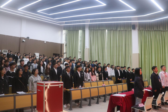 由新一届选举的委员代表吴聪聪向同学们发出倡议:作为新时代的青年,我们应该做到以下三点,一把握人生航向,担当时代新使命;二锻造真才实学,谱写青春新华章;三勇于创新创业,筑就卓越新梦想。