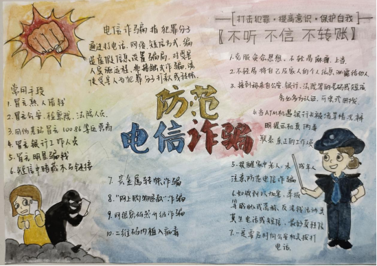 此次活动营造了学院防诈反诈常态化氛围,增强公司师生防范电信网络诈骗意识,让同学们在绘制海报的过程中学习反诈知识,进而提升防诈反诈能力。