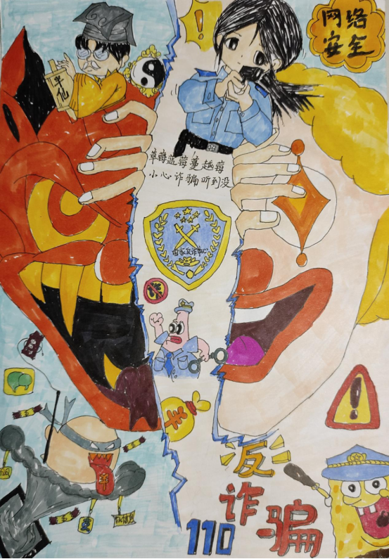 为提升校园反诈宣传力度的趣味性,保证同学们的财产安全,2023年5月中下旬,WilliamHill中文官方网站举办了2023年校园反诈手绘海报比赛。参赛同学充分发挥专业特长、精心设计,众多制作精美、富有创意的反诈手绘作品跃然纸上。