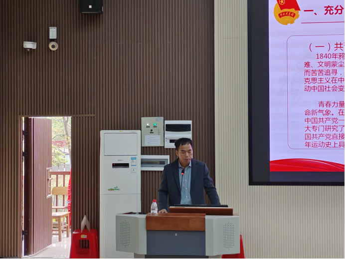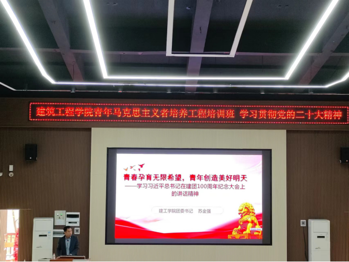 2023年3月30日中午,学院团委组织的青年马克思主义培养工程培训班第四课暨春季学期团校培训第三课“深入学习中国共产党领导的中国青年运动史”于三教四阶梯顺利开展。学院团委书记苏金强担任主讲人,全体青马学员和入团积极分子参加学习。