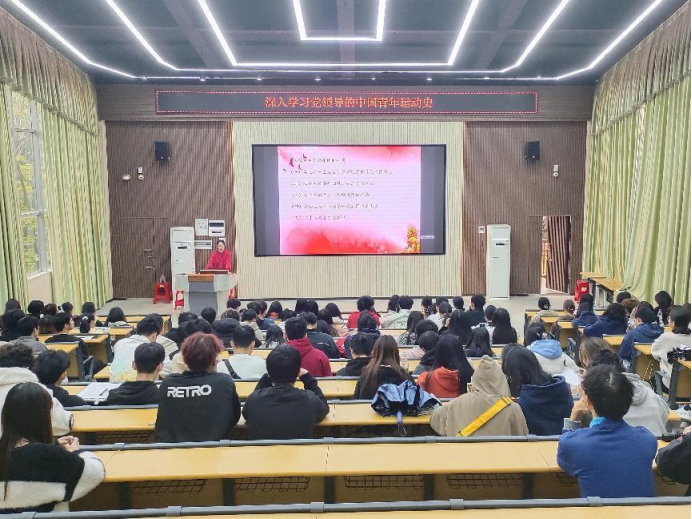2023年3月29日中午,学院团委组织的青年马克思主义培养工程培训班第四课暨春季学期团校培训第二课“深入学习中国共产党领导的中国青年运动史”于三教四阶梯顺利开展。学院团委副书记任静担任主讲人,全体青马学员参加学习。