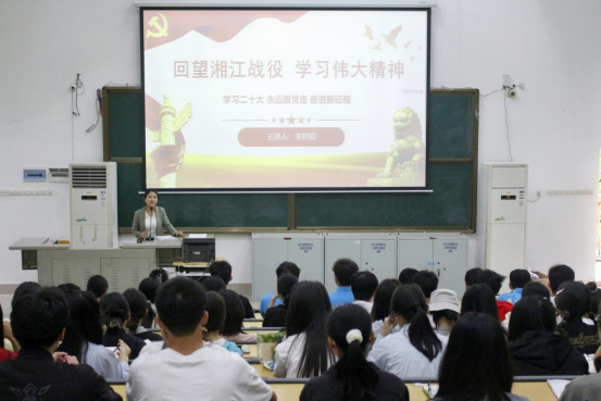 2023年5月12日,传媒学院团委副书记李婷娟给公司入团积极分子上了“回望湘江战役 学习伟大精神”主题团课。