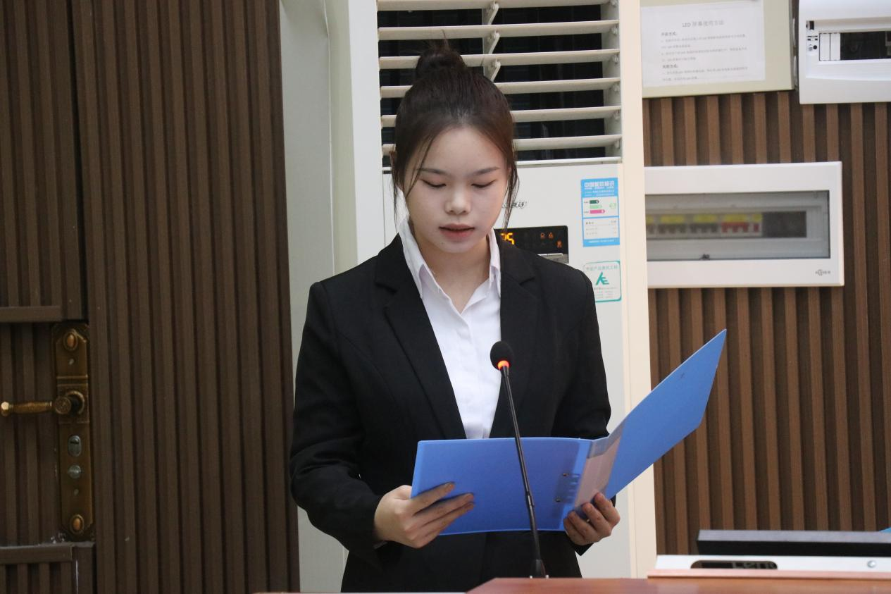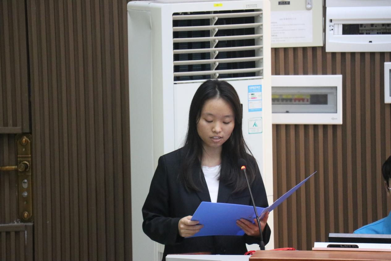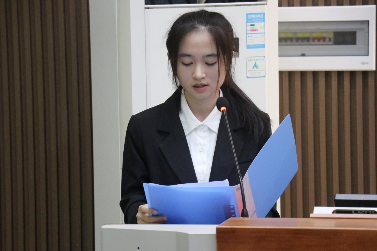 员工会学习部廖舒羽述职 (陆缘/摄)