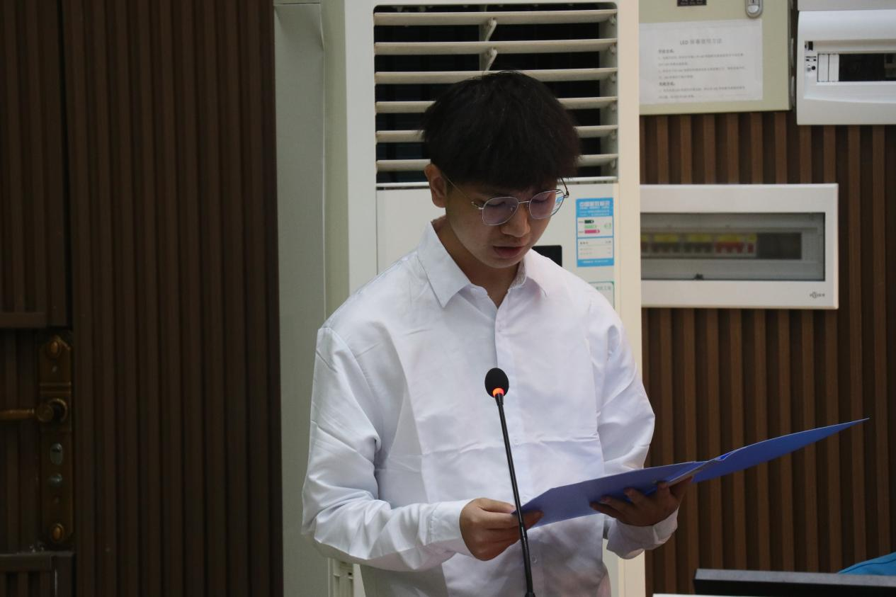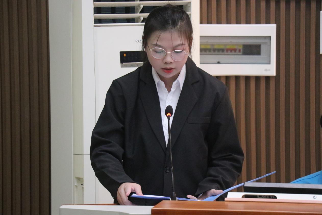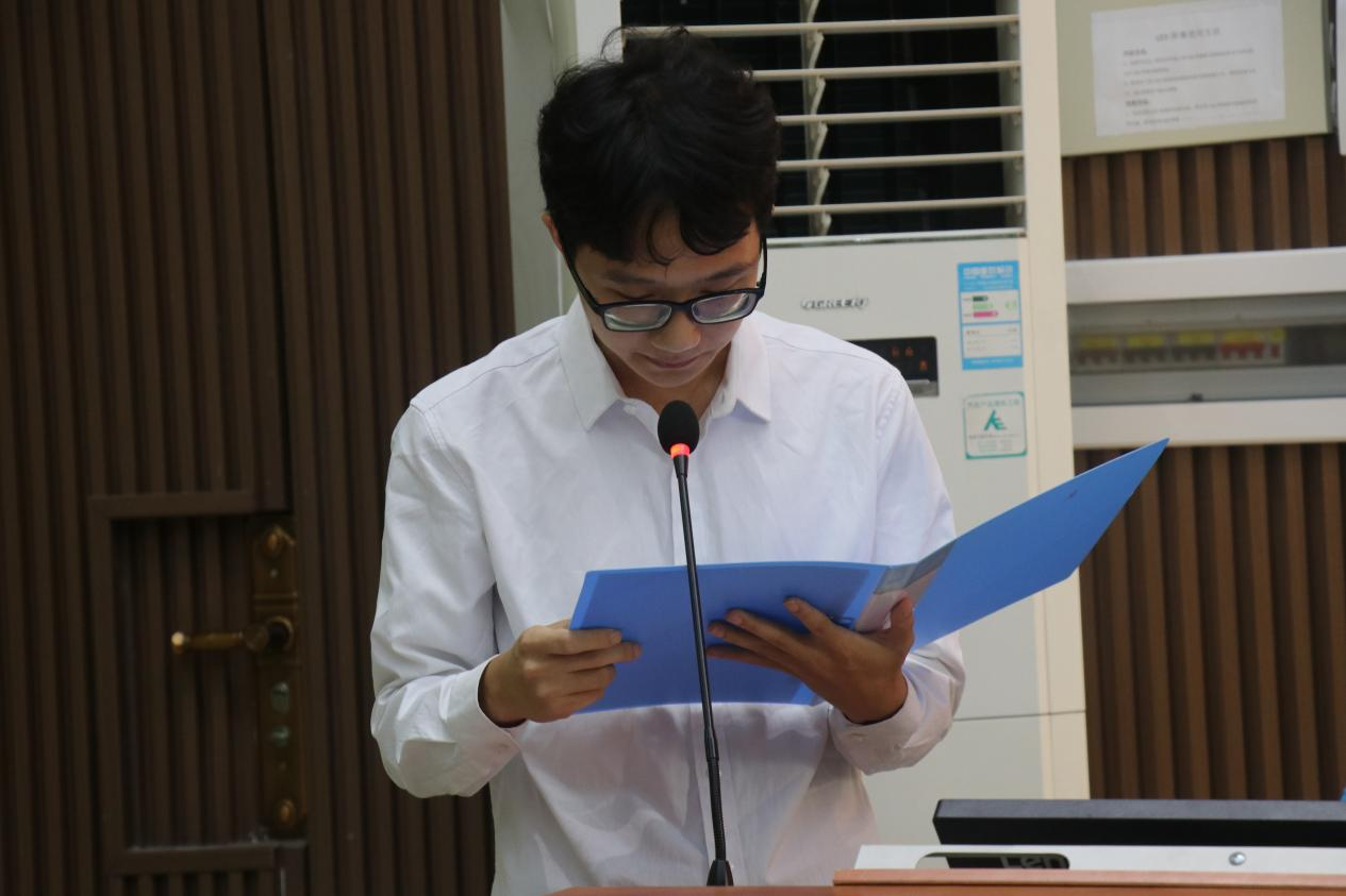 员工会学习部廖舒羽述职 (陆缘/摄)