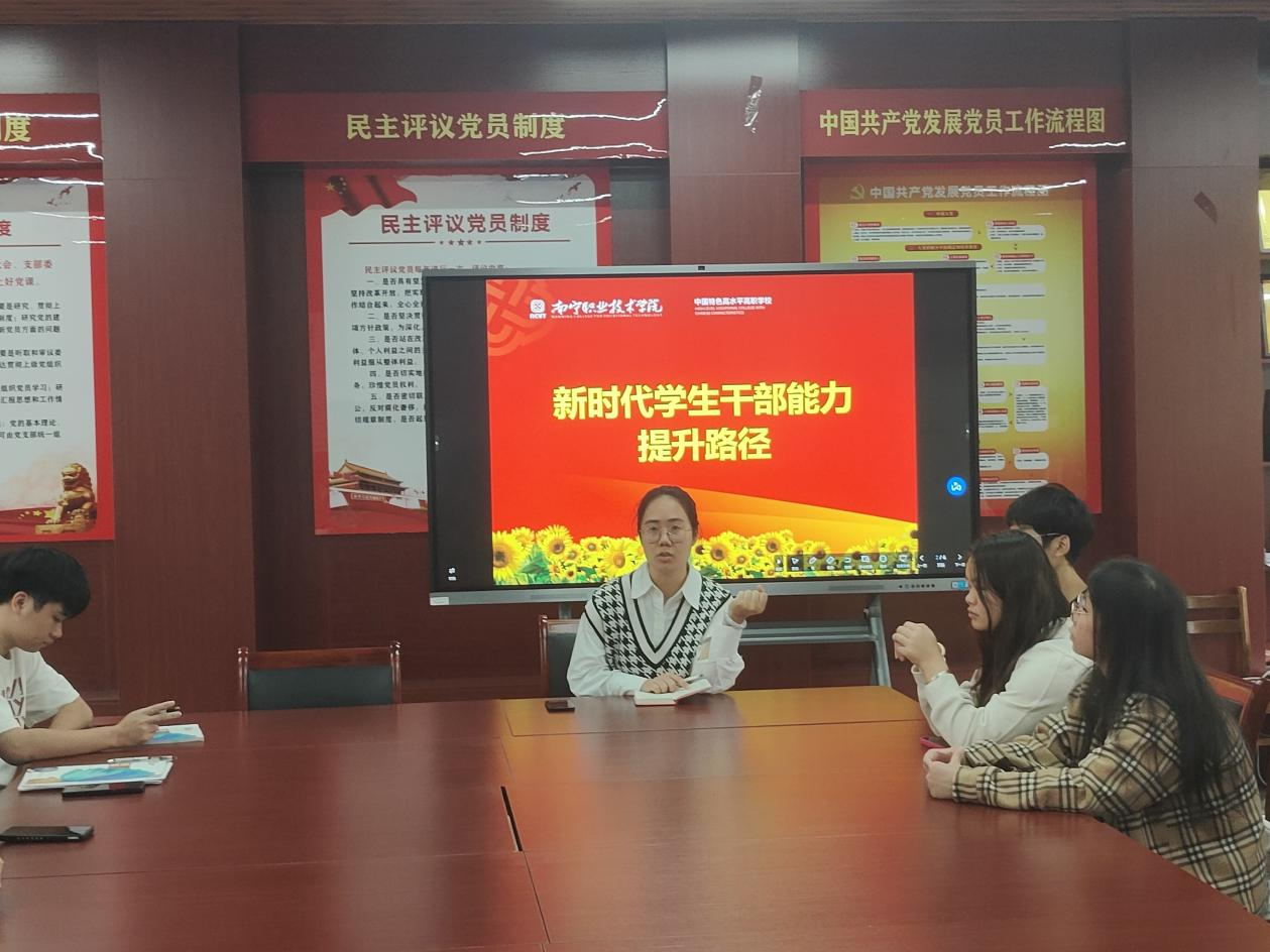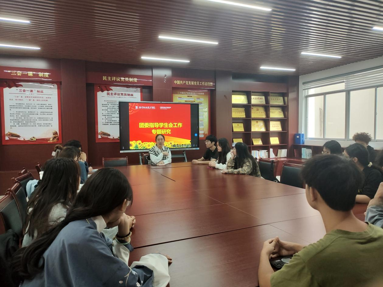 任静老师首先向同学们厘清团委、员工会的工作职责,让大家全面了解组织架构和组织建设,深刻认清部门职责和作用,强化各位员工干部的责任感和使命感。接着任静老师安排员工会各部门汇报个人思想情况和近期工作,指导帮助大家更好地理解和处理同学们的需求和工作实际问题,指出员工会成员应该要从学风建设、心理健康、校园文化、维护权益等方面更好地服务同学。最后任静老师从思想、学习、工作三个方面指导团学委员如何去提升个人综合能力,对各位同学提出期望,新时代员工干部要思想过硬、学习刻苦、身体强健、提升审美、热爱劳动,在德智体美劳全面发挥出表率作用。