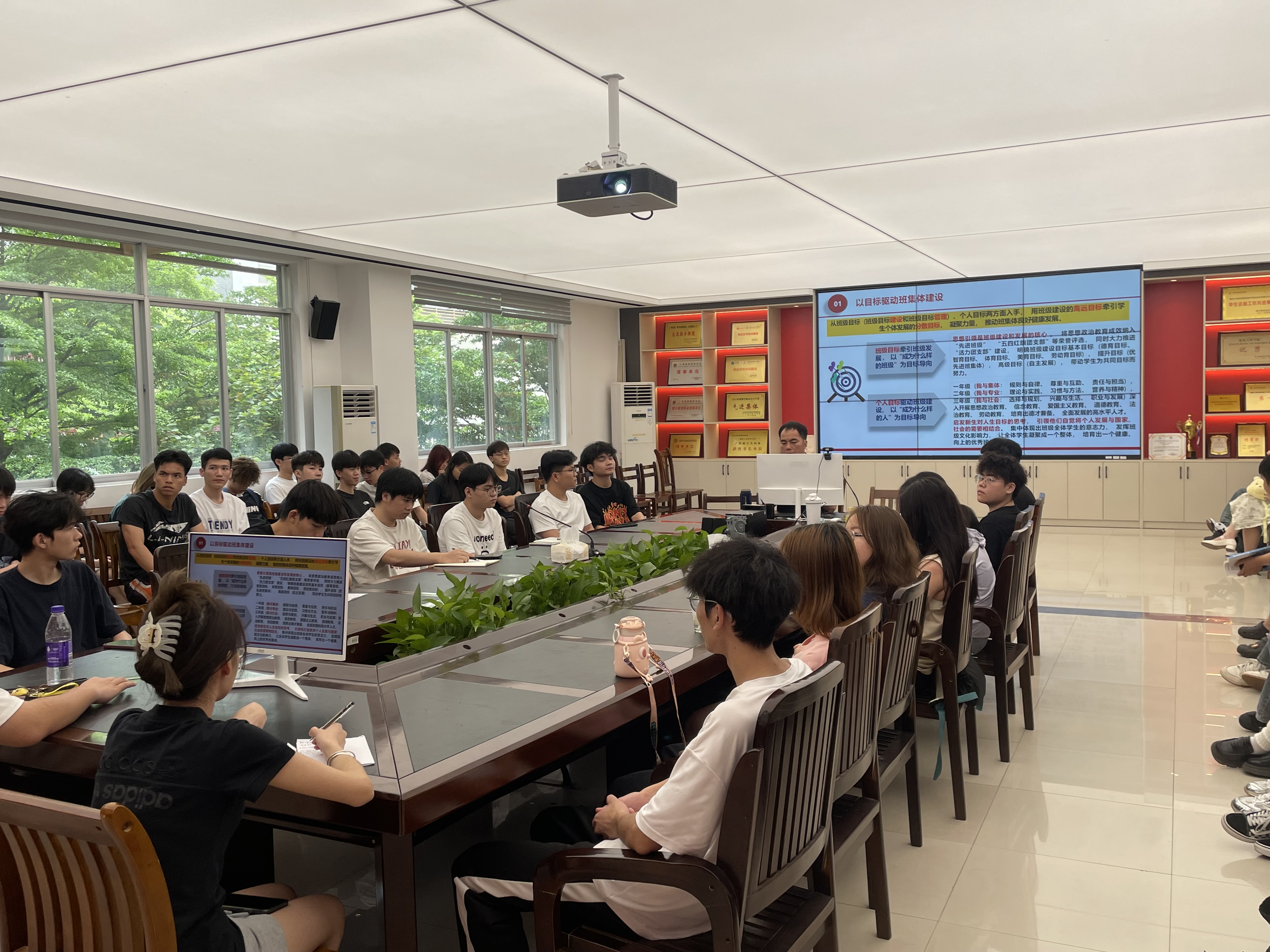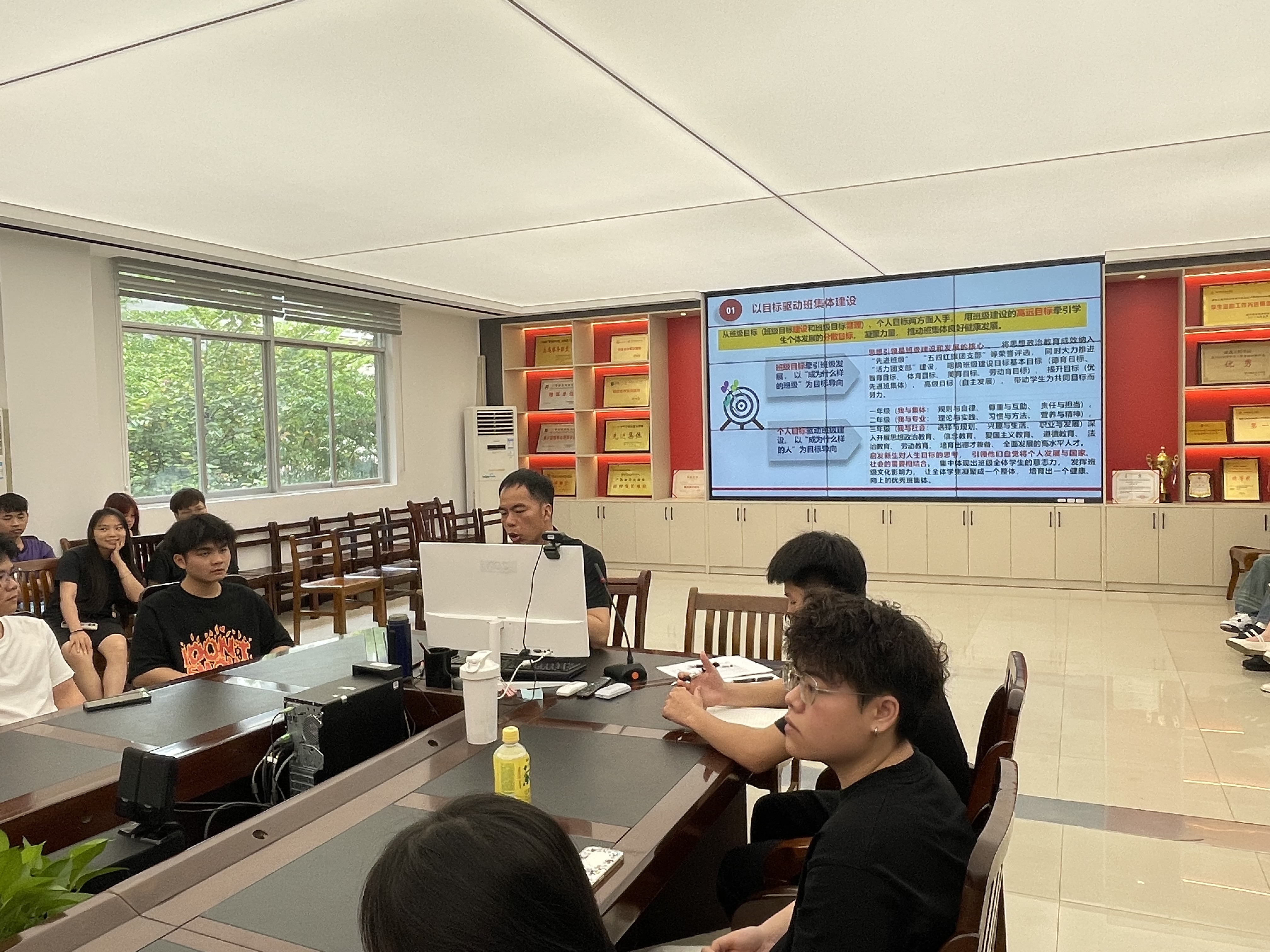 苏老师让团干部们重点讨论了班团一体化建设的具体任务,大家各抒己见,把班级建设问题一一罗列,老师指导他们进行归纳总结,最后得出结论:一是通过目标激励与目标接纳,整合个体利益,形成班级整体愿景,确保每位成员都能为共同目标奋斗;二是设立合理任务,促进成员间的任务交互与依赖,提升合作效率与凝聚力;三是培育班级文化,强化成员互信与文化认同,形成积极向上的班级氛围。这些举措共同构成了班集体建设的坚实基石。