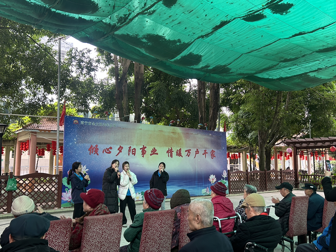 12月7日公司23级物业1班、23级建筑装饰工程技术2班、23级工程造价2班、23级室内设计2班、24级工管1班、24级建筑装饰工程1班及2班携手共同走进西乡塘区金太阳老年公寓,开展了一场以“温暖夕阳,情满金太阳”为主题的志愿服务活动。