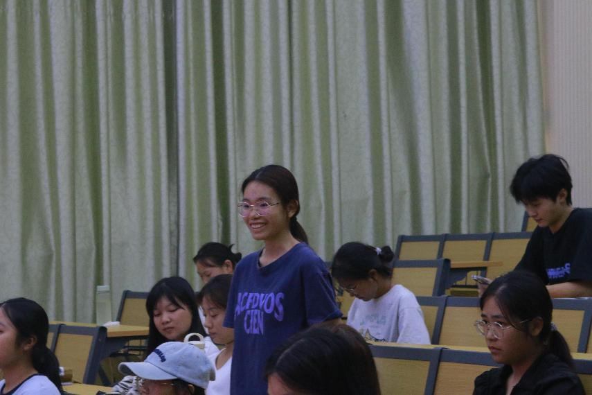 宣传部部长覃柳俊正在分享比赛经验(谢雨晨/摄)