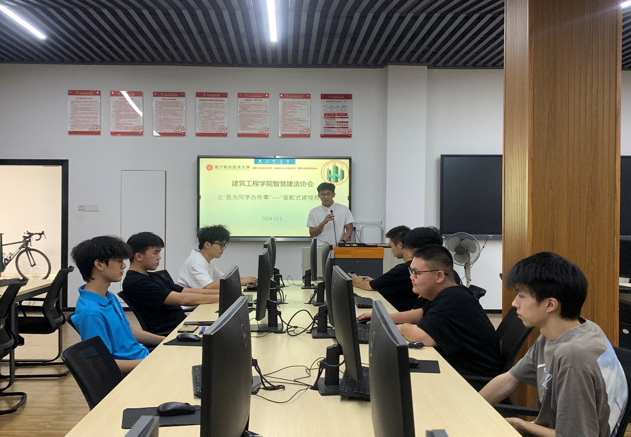 建筑智慧建造协会:11 月 3 日,在3教c007开展活动。活动中,邀请经验丰富的参赛同学分享比赛心得,详细介绍比赛规则。同学们积极组队讨论,解决心中疑惑。此次活动聚焦 BIM 技术,通过案例分析让同学们深入了解比赛实况,讲解应对问题之策,还现场展示软件基础操作,如快速建造小型房屋,使同学们直观感受科技魅力,促进彼此交流,激发学习热情,有效推动以赛促学氛围的营造。