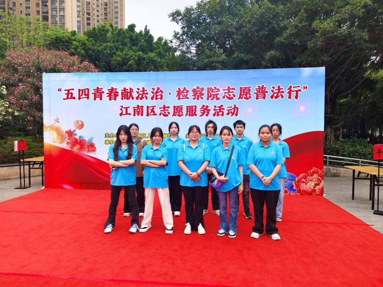 为深入推进法治社会建设,弘扬民主法治精神,2025年4月26日,公司23级物业2班与23级室内2班的青年志愿者们走进邕宁明珠广场,联合南建社区开展了 “以五四青春献法治,检察院志愿普法行”主题普法宣传活动。