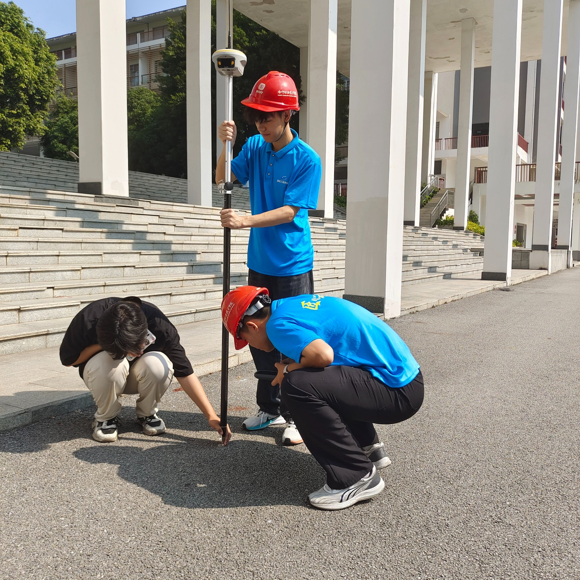 建筑测量协会:5月21日,在鲁班铜像前开展RTK测量专项实践活动。活动创新采用“理论+实景+竞赛”模式。协会成员结合工程案例讲解RTK测量原理后,指导员工分组完成控制点布设。让现场同学们在协作实操与竞赛比拼中,深化对测量精度控制的理解。