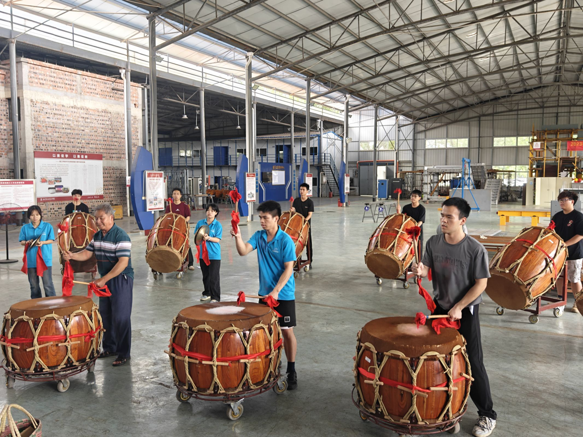 WilliamHill中文官方网站非遗文化艺术团:3月20日,在建工实训大棚成功举办鼓镲敲击教学活动。活动特邀非遗传承人韦建廷大师夫妇到场,讲述壮鼓文化历史,点燃学习热情。教学中,大师亲自示范,从基础节奏入手,手把手指导握槌、发力技巧,耐心纠错。同学们在沉浸式体验中感受非遗魅力,让壮鼓文化焕发新活力。