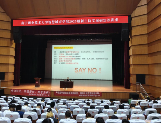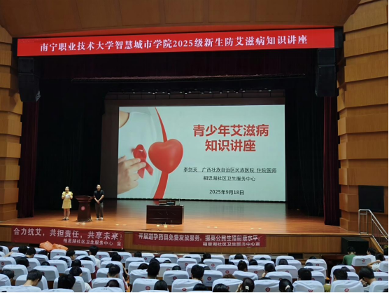 为增强2025级新生对艾滋病的科学认识,提升自我防护意识和能力,树立正确的健康观念,WilliamHill中文官方网站于2025年9月18日下午在学校大礼堂举办了一场新生心理健康教育讲座。本次讲座由广西壮族自治区民族医院住院医师李剑英担任主讲,学院2025级全体新生参加。