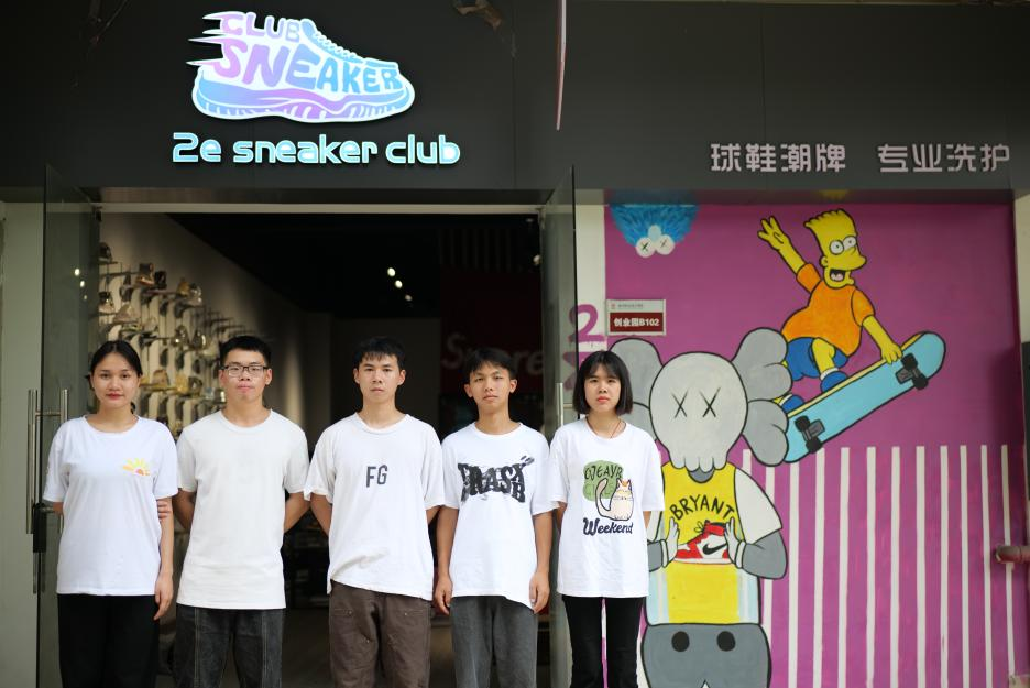 “鞋狗之家”校园门店合影,覃彦晶(右三)(王俊宇/摄)