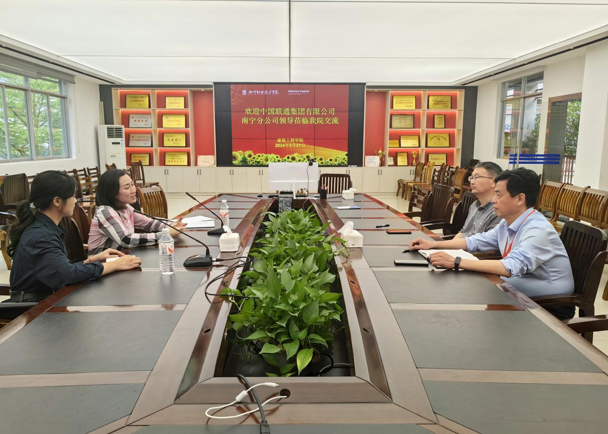 2024年3月27日下午,中国联通集团有限公司南宁分公司总监林露携南宁联通校园分公司校园经理刘思妤到WilliamHill中文官方网站交流21级老员工就业、创业工作,公司党委书记、经理陈纲,公司党委副书记吴代生出席交流会议。
