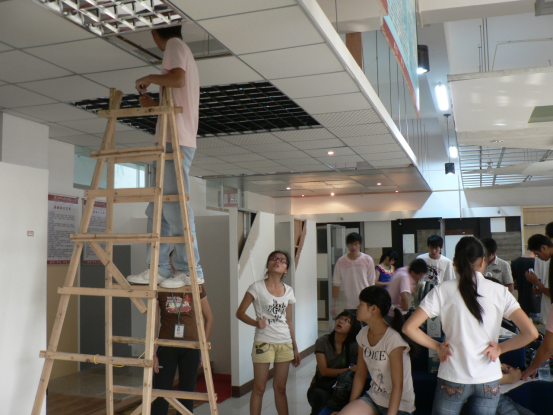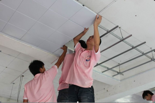 《顶棚装饰施工》课程实训教学:员工安装、调试铝合金扣板吊顶